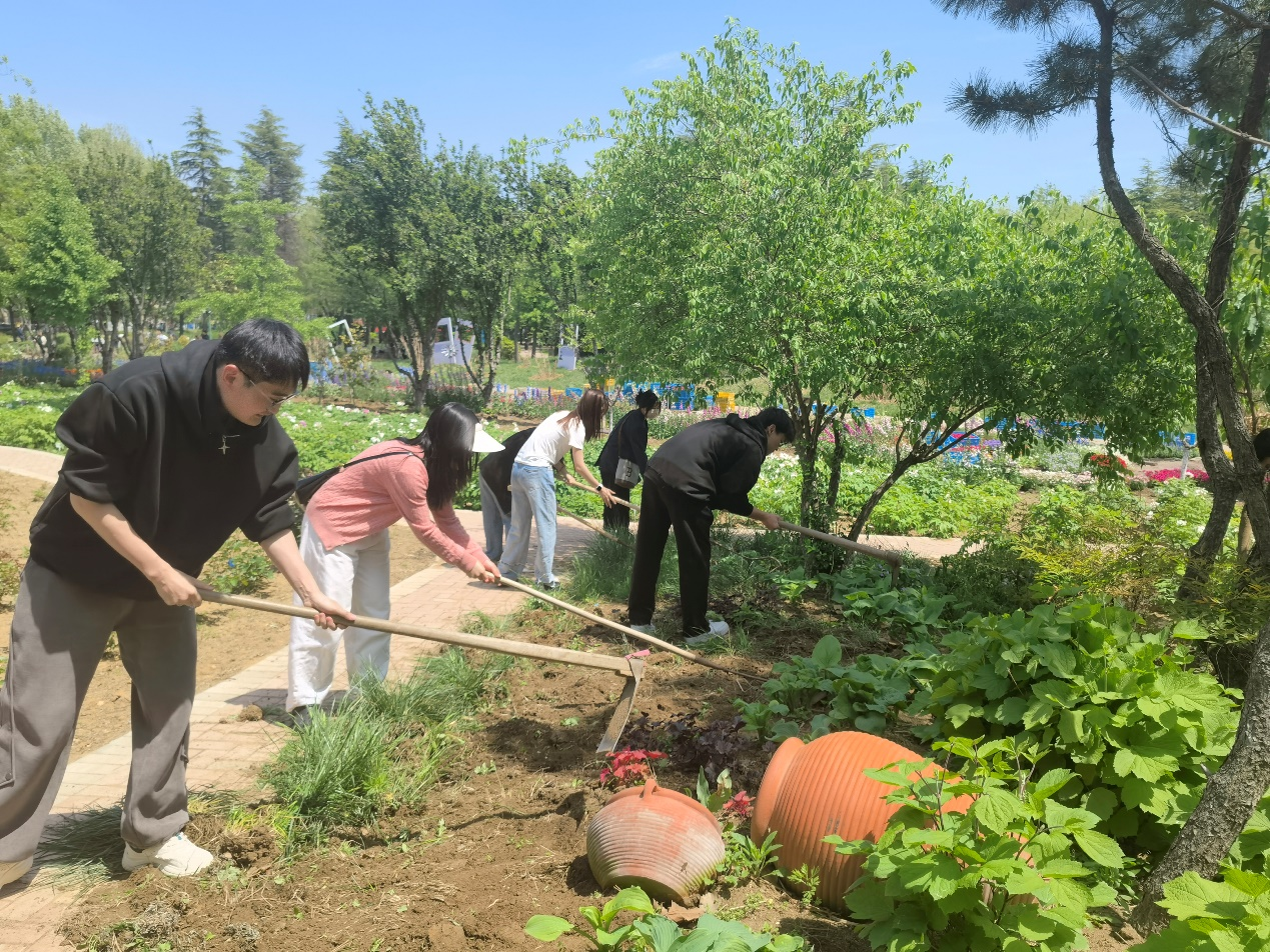 当天中午,全体学生党员齐聚群芳圃,大家撸起袖子,分工合作,默契配合,做好地块整理、地形塑造和土壤改良等专业实践劳动,为群芳圃整体景观打造和环境营造打下良好基础。同学们在劳动中思考,在劳动中获得,在劳动中感受艰辛和快乐,把劳动实践当作锻炼党性,提升自我,强健体魄的良机。
