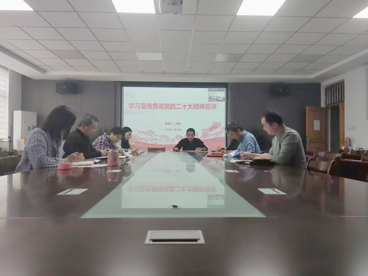 会议最后,宋伟以“牢记空谈误国、实干兴邦,坚定信心、同心同德,埋头苦干、奋勇前进”的精神鼓励参会人员,希望老师们能够在接下来的工作和生活中将二十大精神贯彻落实,更好地推动学院的工作顺利开展。