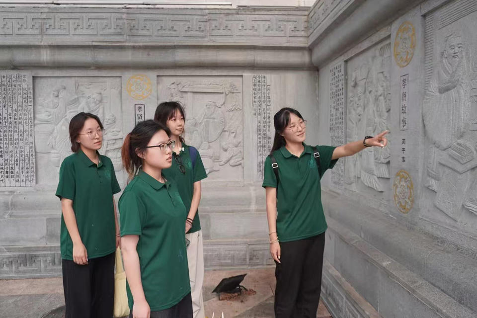 在孝贤广场,实践团成员认真观摩学习了广场上以浮雕、碑刻和文字介绍等形式集中展示的古今孝贤典范人物及其感人事迹。该广场是鱼台县弘扬中华传统美德“孝”与“贤”的核心文化地标。成员们通过现场学习,深入了解了孝贤文化在鱼台的历史渊源、精神内核及其对当地民风的深远影响,加深了对这一地方文化精神的理解。
