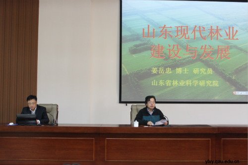 聘任仪式结束后,姜岳忠教授为学校学生作了题为“山东现代林业建设与发展”的精彩报告,并与林学专业教师举行了座谈。