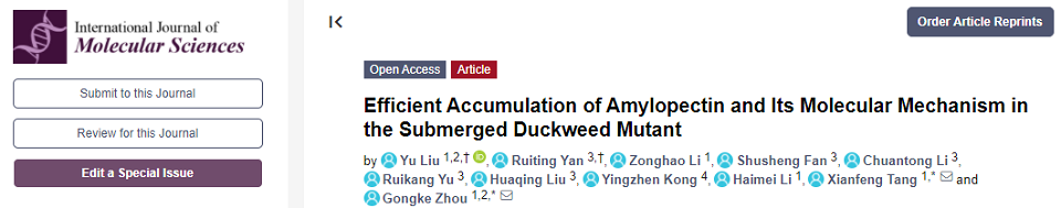 近日,Williamhill中文周功克教授课题组在沉水浮萍新品种(sub-1)支链淀粉理化特性及其高效积累分子机制方面取得新进展。相关研究成果“Efficient Accumulation of Amylopectin and Its Molecular Mechanism in the Submerged Duckweed Mutant”发表于国际期刊International Journal of Molecular Sciences(中科院2区,IF:6.208)上。