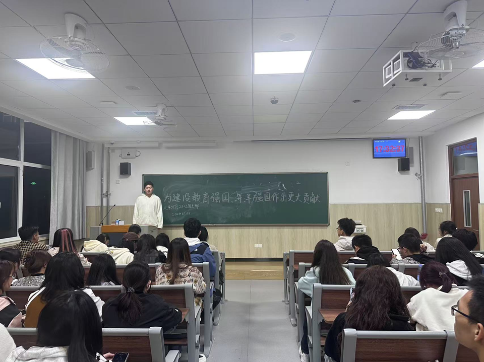 此次政治理论学习聚焦习近平总书记给中国海洋大学全体师生的回信。通过深入学习回信内容,学生们深刻认识建设教育强国和海洋强国的重大意义。在学习过程中,团支部书记结合实际案例,生动阐述教育与海洋事业在国家发展中的重要地位,激发学生们的责任感和使命感。