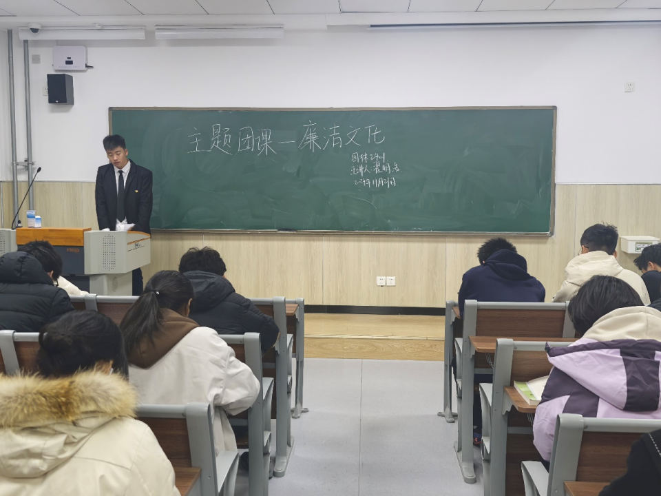 本次主题团课紧紧围绕新时代加强廉洁文化建设的重要性及可行举措。课上,各班团支部书记带领学生从马克思主义政党的鲜明底色、党永葆先进底色的必然要求和统筹规划综合施策三方面进行学习,深化同学们对廉洁文化建设的认识。此外,团支部书记还结合当下社会实际情况,分析廉洁文化在校园生活、未来职场以及整个社会发展中所起到的关键作用,指出廉洁不仅关乎个人的品德修养和声誉,更是维护公平公正、营造良好风气的重要保障。