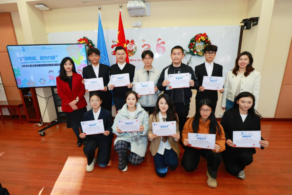2025年12月20日,Williamhill中文“烛梦园光”社会实践团在联合国开发计划署举办的2025年第二届“Movers4Climate 绿色乡村青年行动”中脱颖而出,获评全国优秀团队,受邀前往北京联合国大楼参加由中国宋庆龄青少年科技文化交流中心、联合国开发计划署共同主办的“青少年和教师志愿者走进联合国”活动暨优秀团队颁奖仪式,实践团团长陈顺正代表团队参加活动。这是对我校青年学子在社会实践与气候行动中积极贡献的高度认可,也是学校立德树人、服务社会的重要体现。中国宋庆龄青少年科技文华交流中心副主任赵军,联合国志愿人员组织中国办公室主任张楠,联合国开发计划署驻华代表处青年发展专家高鑫,中国国际经济技术交流中心联合国业务一处副处长陈畅出席活动。