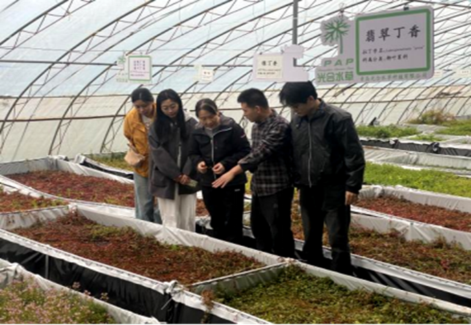 科研团队率先深入基地水生植物培育大棚,实地调研水草规模化培育情况。棚内育苗水槽分区布局规范,紫红丁香、青叶、一叶莲、流苏草、日本百叶、水罗兰等三十余种水生植物长势旺盛,各类传感器实时采集水体pH值、温度、溶解氧等关键环境参数,实现精细化培育管理。企业负责人陈总介绍,基地聚焦观赏类与生态修复类两大核心系列水生植物培育,其中荷花、睡莲品类市场需求旺盛,但特色品种迭代与品类丰富度仍有提升空间(图1)。技术人员现场演示水草泥标准化铺设流程,详解核心培育技术要点:“基质厚度需严格控制在3-5厘米,水质pH值稳定维持在6.5-7.5区间,每周需按三分之一比例定期换水,确保水草生长适宜环境。”科研团队围绕主栽品种抗逆性改良、低温与水质波动环境下存活率提升、水景营造中美学与生态功能协同发挥等关键技术问题,与企业技术骨干展开深度研讨,形成多项实操性技术共识(图2)。