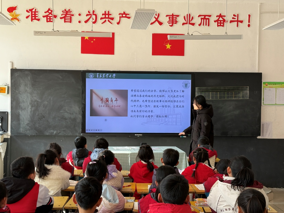 宣讲过程中,理论宣讲团成员化身红色精神的“传播者”、青春力量的“代言人”,围绕经典红色故事、时代楷模事迹、青年奋斗历程三大核心板块展开分享与讲解,创新打造沉浸式、体验式、开放式理论宣讲微课堂。在红色故事分享环节,成员们深情讲述革命先辈的坚守与奉献;在趣味互动环节,红色知识挑战点燃学生热情,初心寄语书写凝聚青春向往,宣讲团成员与同学们面对面交流、心贴心沟通,在欢声笑语中拉近理论与青春的距离,使红色精神在互动中传递、在感悟中升华,引导同学们主动参与、积极思考,现场氛围热烈融洽,潜移默化将红色精神入脑、入心、入行;在青年奋斗板块,成员们结合自身大学入学以来的成长经历和实践感悟,分享当代青年在志愿服务、社会实践中的责任与担当,鼓励中小学生肩负历史使命,坚定前进信心,立大志、明大德、成大才、担大任,努力成长为担当民族复兴大任的时代新人。
