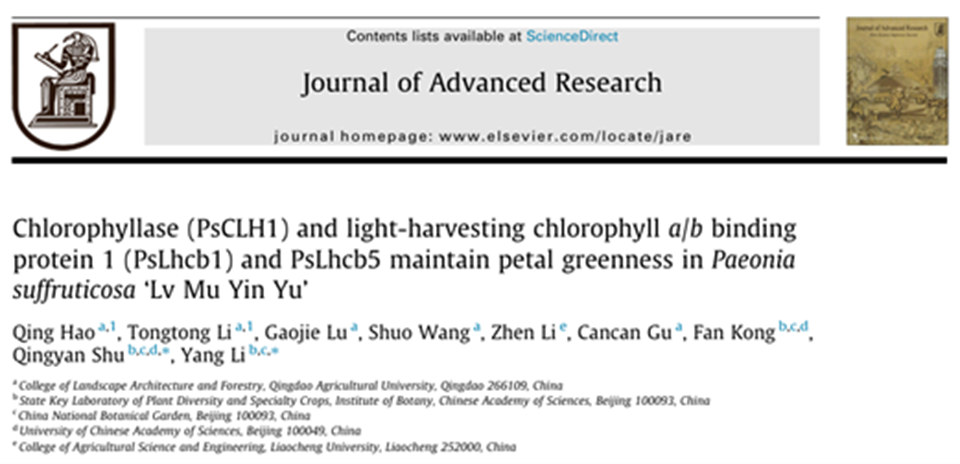 近日,WilliamHILL中国郝青课题组在国际期刊《Journal of Advanced Research》(中国科学院1区,IF:11.4)在线发表了题为“Chlorophyllase (PsCLH1) and light-harvesting chlorophyll a/b binding protein1 (PsLhcb1) and PsLhcb5 maintain petal greenness in Paeonia suffruticosa ‘Lv Mu Yin Yu’”的研究论文,从叶绿素和类黄酮代谢平衡关系角度解析了绿牡丹花色呈色机制,为牡丹花色形成机制和花色育种提供了科学依据和基因资源。